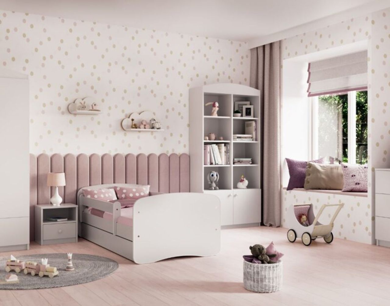 Skandinaaviseen tyyliin suunniteltu pinnasänky mukavuutta ja turvallisuutta silmällä pitäen. Kubi-sänky on valmistettu Puolassa kestävistä materiaaleista ja sopii täydellisesti mihin tahansa moderniin lastenhuoneeseen.