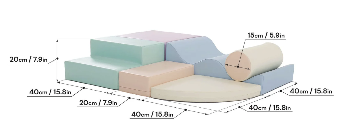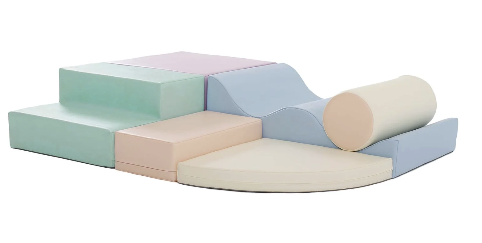 Tämä setti sisältää 6 erilaista pehmeää palikkaa, kuten ramppeja ja kulmapaloja. Taaperot voivat koota niistä jännittäviä rakenteita, jotka kehittävät motorisia taitoja ja ongelmanratkaisukykyä – täydellinen Montessori-lelu.